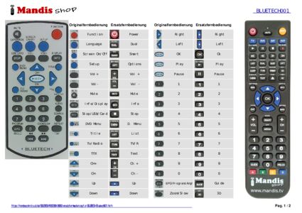 Diese Fernbedienung ersetzt Ihre Bluetech001 in vollem Umfang und bietet alle Funktionen des Originals.