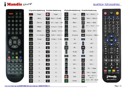 Diese Fernbedienung ersetzt Ihre TQT1910BT002 in vollem Umfang und bietet alle Funktionen des Originals.