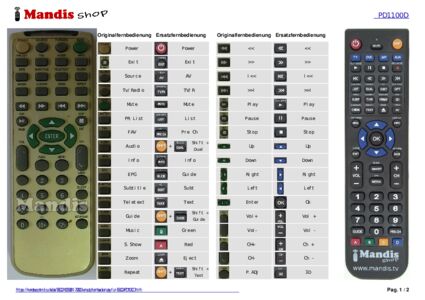 Ein Dokument ist enthalten, um die Verwendung der neuen Fernbedienung zu erleichtern, indem es die Tastenbelegung zeigt.