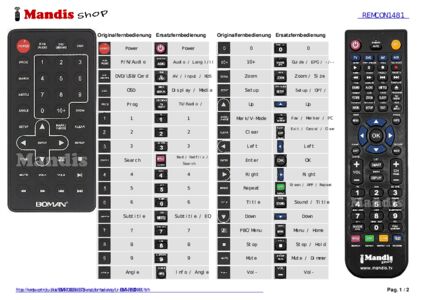 Ein Dokument ist enthalten, um die Verwendung der neuen Fernbedienung zu erleichtern, indem es die Tastenbelegung zeigt.