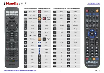 Ein Dokument ist enthalten, um die Verwendung der neuen Fernbedienung zu erleichtern, indem es die Tastenbelegung zeigt.