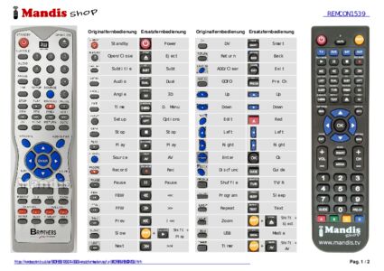 Diese Fernbedienung ersetzt Ihre REMCON1539 in vollem Umfang und bietet alle Funktionen des Originals.