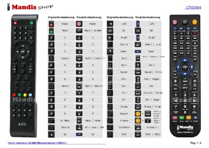 Ein Dokument ist enthalten, um die Verwendung der neuen Fernbedienung zu erleichtern, indem es die Tastenbelegung zeigt.