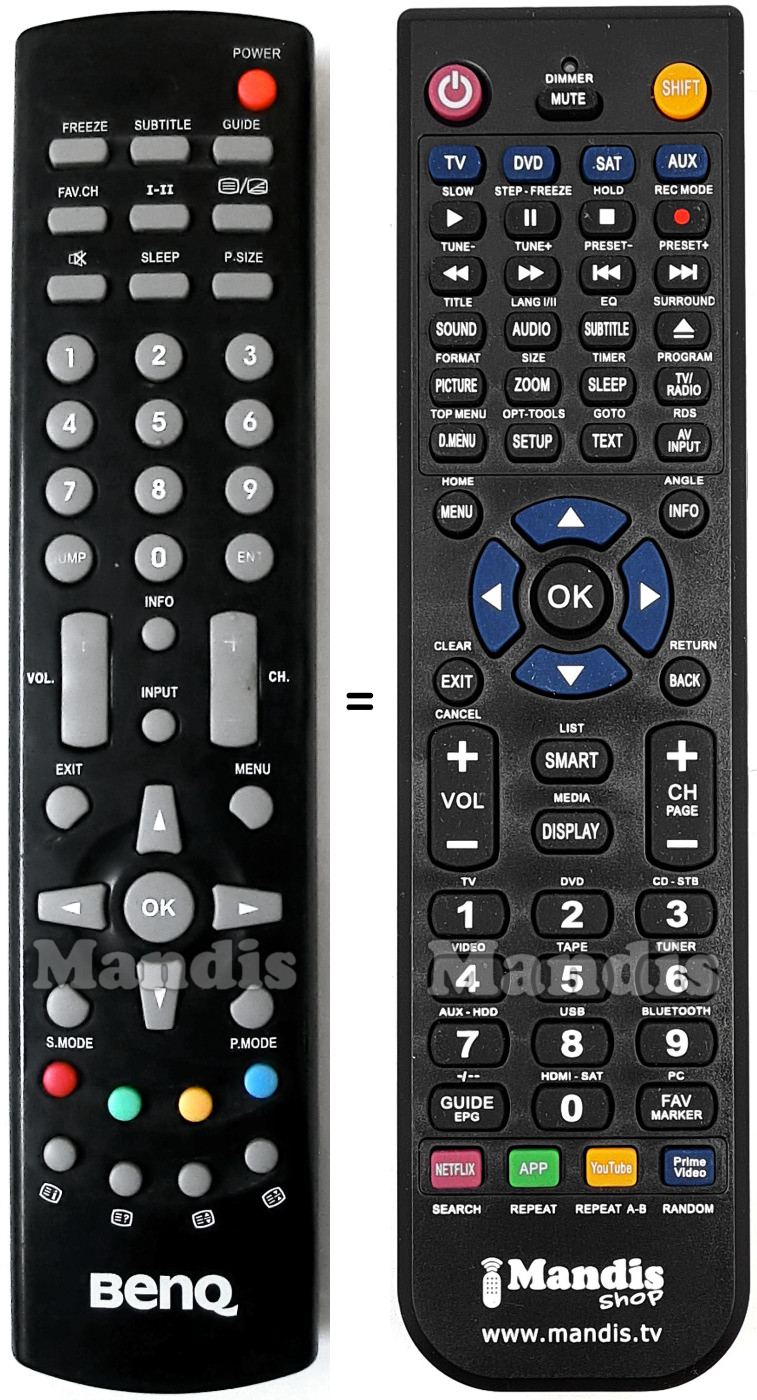 Diese Fernbedienung ersetzt Ihre BenQ002 in vollem Umfang und bietet alle Funktionen des Originals.