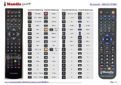 Ein Dokument ist enthalten, um die Verwendung der neuen Fernbedienung zu erleichtern, indem es die Tastenbelegung zeigt.