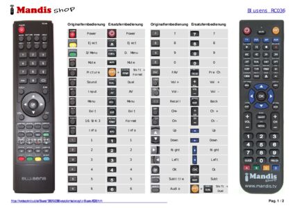 Diese Fernbedienung ersetzt Ihre RC036-2 in vollem Umfang und bietet alle Funktionen des Originals.