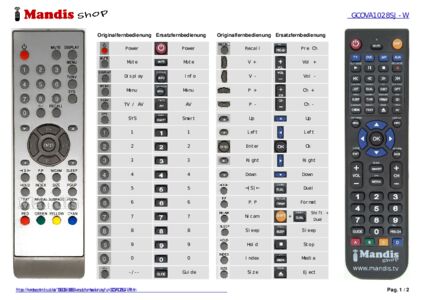 Ein Dokument ist enthalten, um die Verwendung der neuen Fernbedienung zu erleichtern, indem es die Tastenbelegung zeigt.