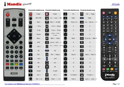 Ein Dokument ist enthalten, um die Verwendung der neuen Fernbedienung zu erleichtern, indem es die Tastenbelegung zeigt.