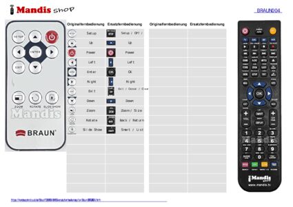 Diese Fernbedienung ersetzt Ihre BRAUN004 in vollem Umfang und bietet alle Funktionen des Originals.