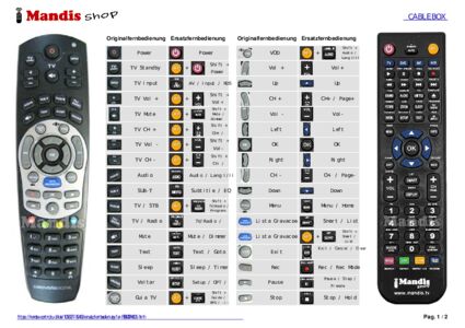 Ein Dokument ist enthalten, um die Verwendung der neuen Fernbedienung zu erleichtern, indem es die Tastenbelegung zeigt.
