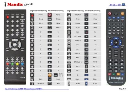 Ein Dokument ist enthalten, um die Verwendung der neuen Fernbedienung zu erleichtern, indem es die Tastenbelegung zeigt.