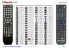 Power, Mute, 1, 2, 3, 4, 5, 6, 7, 8, 9, 0, -/--, Recall, P. MOde, S. Mode, Sleep, Nicam, Menu, Source, Up, Down, Right, Left, OK, Exit, Display, Vol +, Vol -, List, Fav List, CH +, CH -, TV / Radio, CPG, Aspect, Freeze, Index, Cancel, Subpage, Text, Reveal, Size, Hold, MIX, Red, Green, Yellow, Cyan