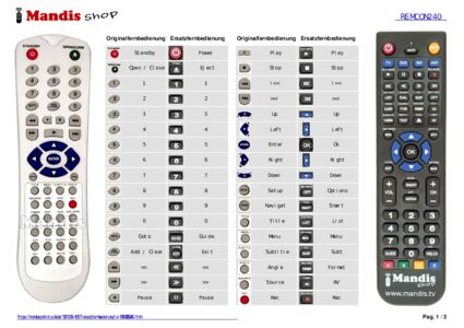 Ein Dokument ist enthalten, um die Verwendung der neuen Fernbedienung zu erleichtern, indem es die Tastenbelegung zeigt.