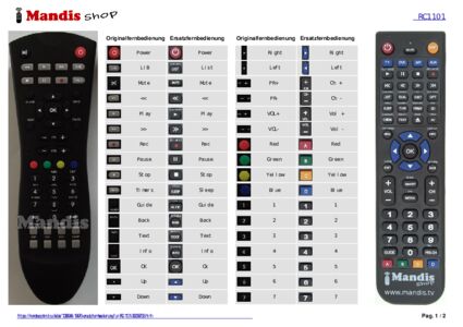 Ein Dokument ist enthalten, um die Verwendung der neuen Fernbedienung zu erleichtern, indem es die Tastenbelegung zeigt.