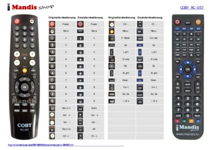 Diese Fernbedienung ersetzt die meisten Funktionen Ihres RC057. Es ist keine Universalfernbedienung, sondern eine Kopie mit den meisten Tasten und Funktionen Ihres Originals.