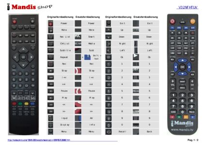 Ein Dokument ist enthalten, um die Verwendung der neuen Fernbedienung zu erleichtern, indem es die Tastenbelegung zeigt.