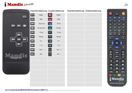 Diese Fernbedienung ersetzt Ihre T4 in vollem Umfang und bietet alle Funktionen des Originals.