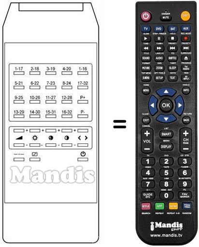 Es handelt sich jedoch nicht um eine Universalfernbedienung sondern um eine Fernbedienung die das Original ersetzt.