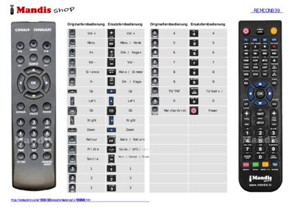 Ein Dokument ist enthalten, um die Verwendung der neuen Fernbedienung zu erleichtern, indem es die Tastenbelegung zeigt.