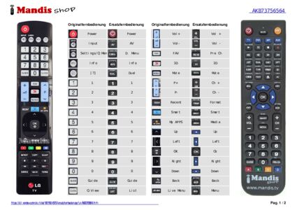 Ein Dokument ist enthalten, um die Verwendung der neuen Fernbedienung zu erleichtern, indem es die Tastenbelegung zeigt.