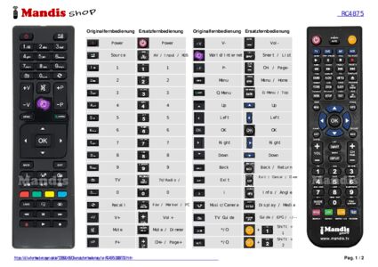 Ein Dokument ist enthalten, um die Verwendung der neuen Fernbedienung zu erleichtern, indem es die Tastenbelegung zeigt.