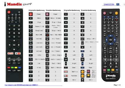 Ein Dokument ist enthalten, um die Verwendung der neuen Fernbedienung zu erleichtern, indem es die Tastenbelegung zeigt.