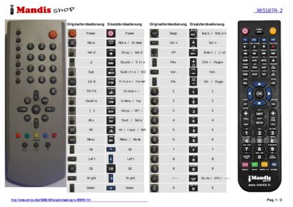 Ein Dokument ist enthalten, um die Verwendung der neuen Fernbedienung zu erleichtern, indem es die Tastenbelegung zeigt.