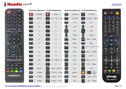Ein Dokument ist enthalten, um die Verwendung der neuen Fernbedienung zu erleichtern, indem es die Tastenbelegung zeigt.