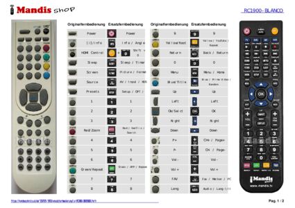 Diese Fernbedienung ersetzt Ihre RC1900 (30065008) in vollem Umfang und bietet alle Funktionen des Originals.