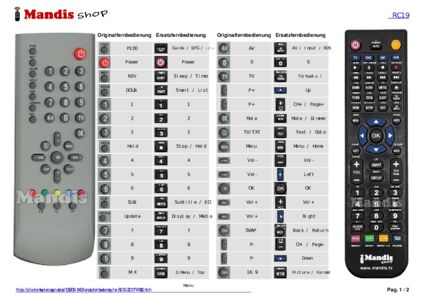 Diese Fernbedienung ersetzt Ihre RCMOD 1 (XKU187R) in vollem Umfang und bietet alle Funktionen des Originals.