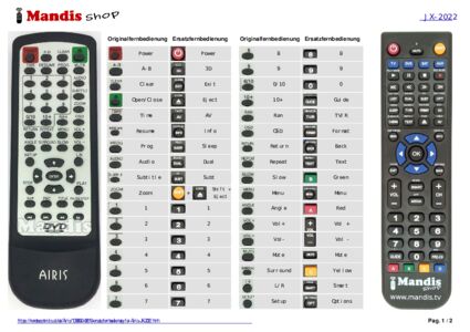Ein Dokument ist enthalten, um die Verwendung der neuen Fernbedienung zu erleichtern, indem es die Tastenbelegung zeigt.