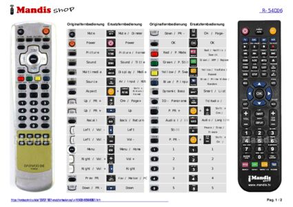 Ein Dokument ist enthalten, um die Verwendung der neuen Fernbedienung zu erleichtern, indem es die Tastenbelegung zeigt.