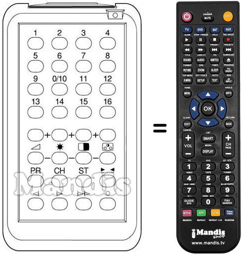 Die Fernbedienung ersetzt das Original IR 99 CH / 16 PR in der Gesamtheit seiner Funktionen.