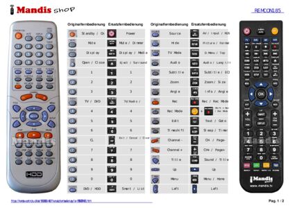 Ein Dokument ist enthalten, um die Verwendung der neuen Fernbedienung zu erleichtern, indem es die Tastenbelegung zeigt.