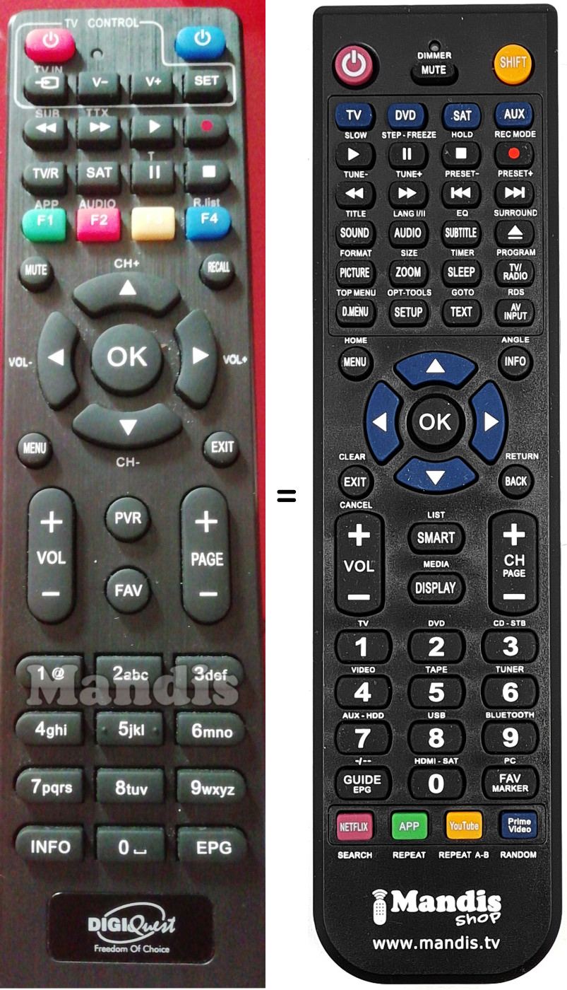 Fernbedienung, die das Original und die Gesamtheit seiner Funktionen, vollständig ersetzt. Es handelt sich jedoch nicht um eine Universalfernbedienung sondern um eine Fernbedienung die das Original ersetzt. Sie erhalten eine nach Einlegen der Batterien sofort einsatzbereite Fernbedienung. Jegliches Programmieren entfällt. Wir geben umfassende Garantie dafür, dass diese Fernbedienung alle Funktionen der Originalfernbedienung erfüllt.