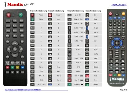 Ein Dokument ist enthalten, um die Verwendung der neuen Fernbedienung zu erleichtern, indem es die Tastenbelegung zeigt.