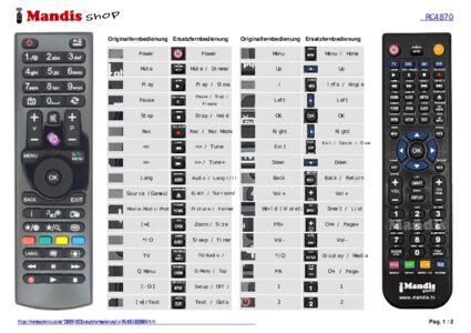 Ein Dokument ist enthalten, um die Verwendung der neuen Fernbedienung zu erleichtern, indem es die Tastenbelegung zeigt.