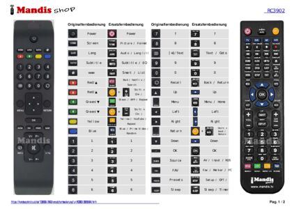 Ein Dokument ist enthalten, um die Verwendung der neuen Fernbedienung zu erleichtern, indem es die Tastenbelegung zeigt.