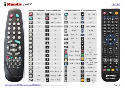 Ein Dokument ist enthalten, um die Verwendung der neuen Fernbedienung zu erleichtern, indem es die Tastenbelegung zeigt.