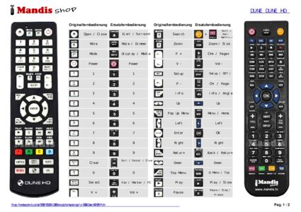 Diese Fernbedienung ersetzt Ihre Dune HD (HDTV) in vollem Umfang und bietet alle Funktionen des Originals.