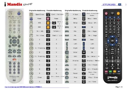 Diese Fernbedienung ersetzt Ihre 97P1RA3AB0 in vollem Umfang und bietet alle Funktionen des Originals.