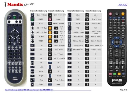 Diese Fernbedienung ersetzt Ihre AM-43D (9CDM063907) in vollem Umfang und bietet alle Funktionen des Originals.