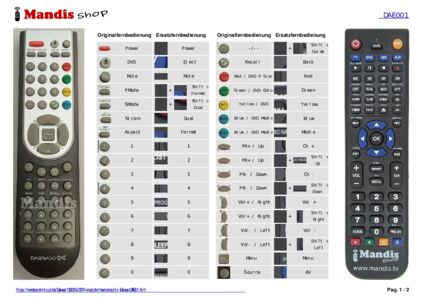 Ein Dokument ist enthalten, um die Verwendung der neuen Fernbedienung zu erleichtern, indem es die Tastenbelegung zeigt.