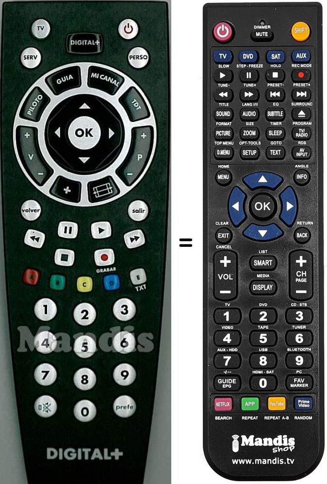 Fernbedienung, die das Original und die Gesamtheit seiner Funktionen, vollständig ersetzt.