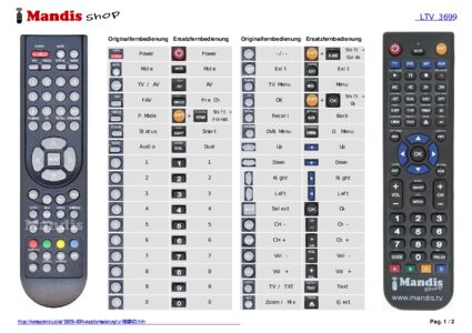 Ein Dokument ist enthalten, um die Verwendung der neuen Fernbedienung zu erleichtern, indem es die Tastenbelegung zeigt.