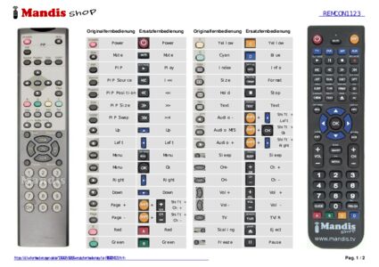 Ein Dokument ist enthalten, um die Verwendung der neuen Fernbedienung zu erleichtern, indem es die Tastenbelegung zeigt.