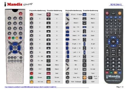 Ein Dokument ist enthalten, um die Verwendung der neuen Fernbedienung zu erleichtern, indem es die Tastenbelegung zeigt.