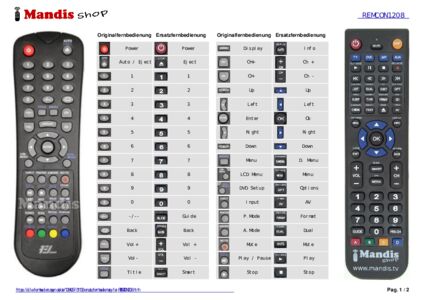 Ein Dokument ist enthalten, um die Verwendung der neuen Fernbedienung zu erleichtern, indem es die Tastenbelegung zeigt.