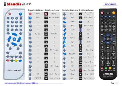 Diese Fernbedienung ersetzt Ihre REMCON838 in vollem Umfang und bietet alle Funktionen des Originals.
