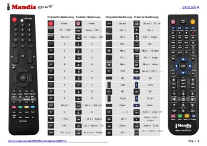 Ein Dokument ist enthalten, um die Verwendung der neuen Fernbedienung zu erleichtern, indem es die Tastenbelegung zeigt.